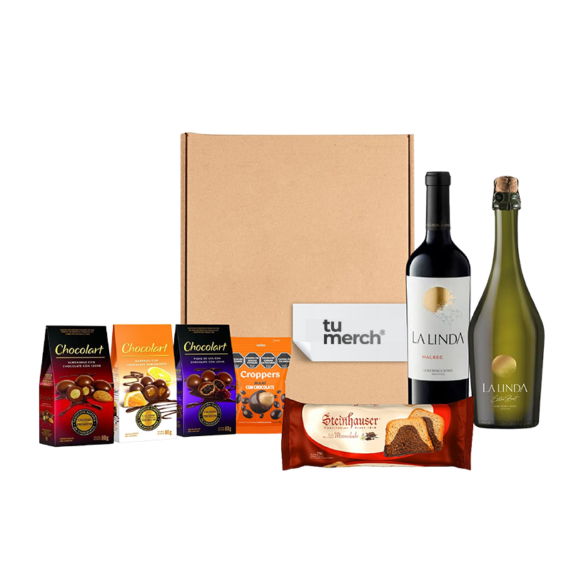 $1.00La caja incluye: • Vino La Linda • Espumante La Linda • Budin Stienhauser • Almendras con Choc. Chocolart •… -