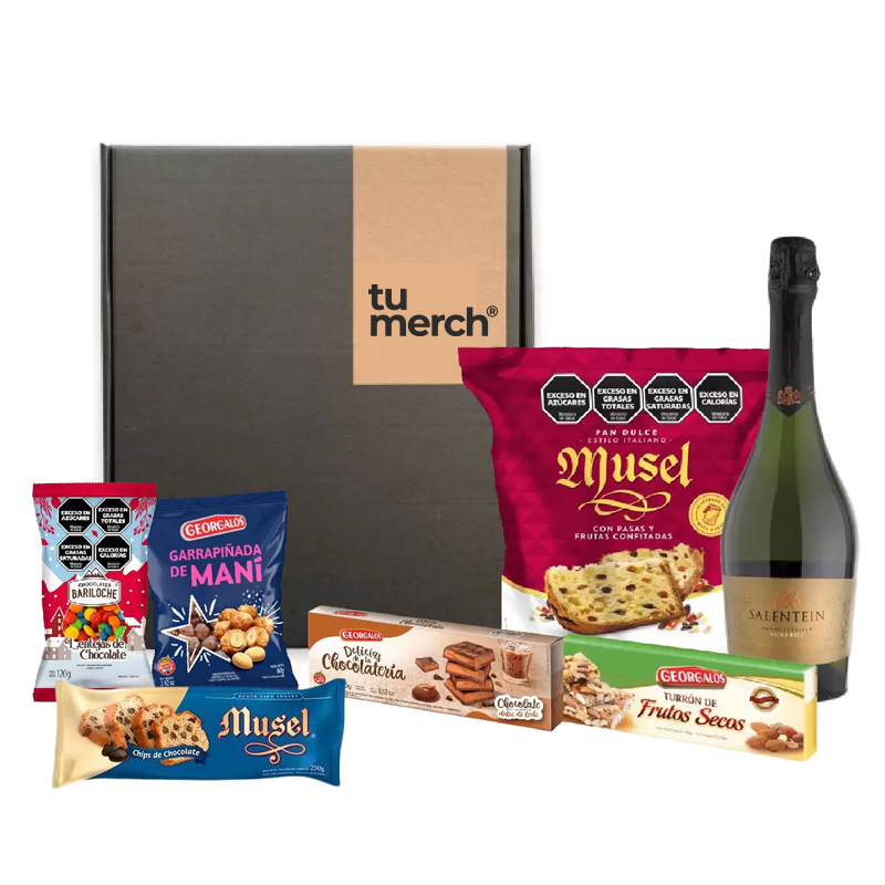 $1.00Incluye: Caja de cartón L Champagne Salentein x 750 cc Pan dulce Musel x 500 gr Budin Musel x 250…