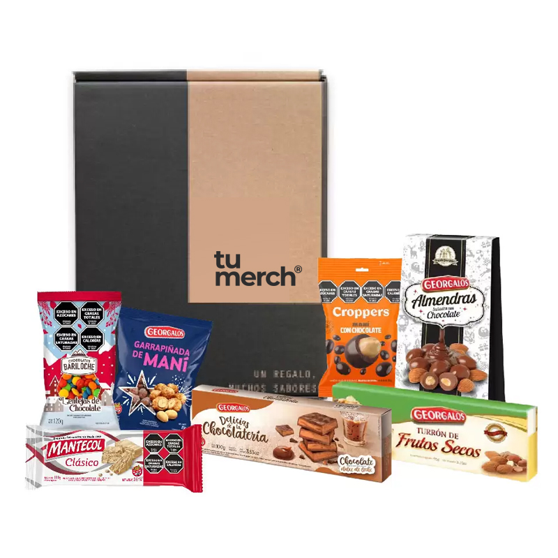 $1.00Incluye: Caja de cartón S Turron de frutos secos Georgalos x 95 gr Tableta rellena Georgalos x 100 gr Mantecol… -