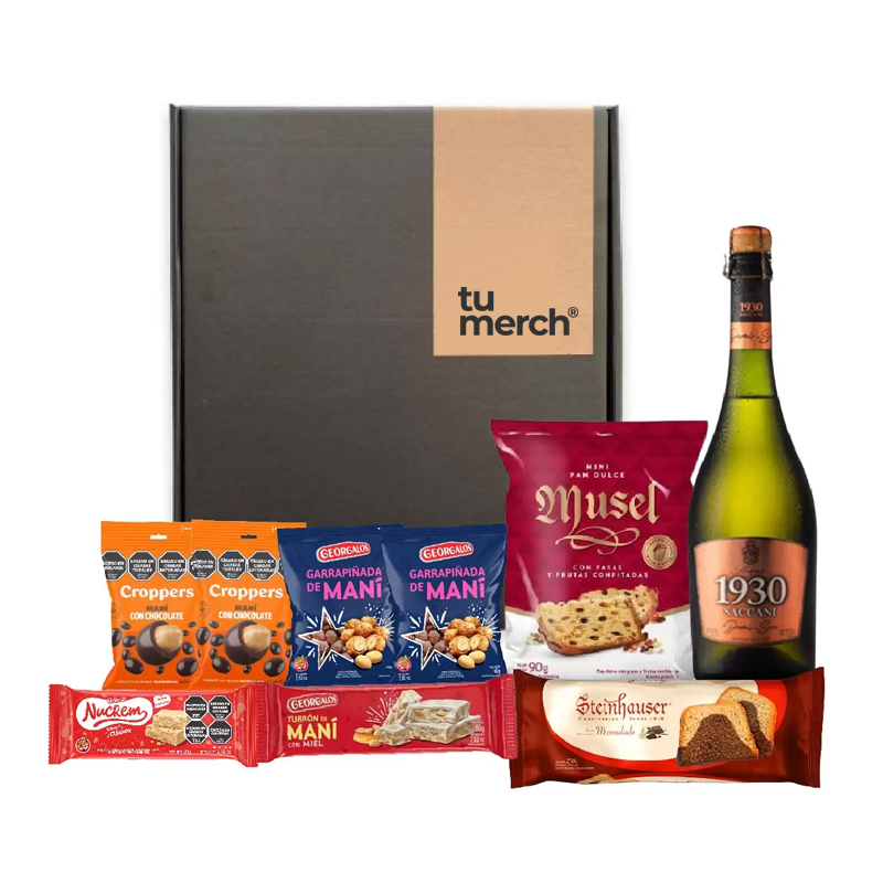 $1.00Incluye: Caja de cartón L Champagne Salentein x 750 cc Torta Imperial de mani Bariloche Mani con chocolate Croppers x… -