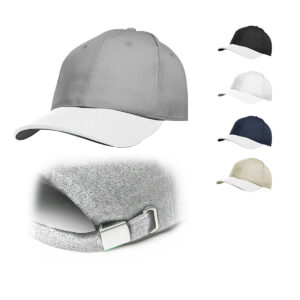 $1.00Gorro de 6 gajos con visera. El dorso del del gorro cuenta con diseño de tela de red de color… -