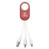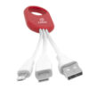 Plástico. Cables para carga. Medidas de los cables con adaptador 8 cm. aprox. Medida de su base 5 x 2,5 cm. Los adaptadores son para Android, Iphone y adaptador USB.