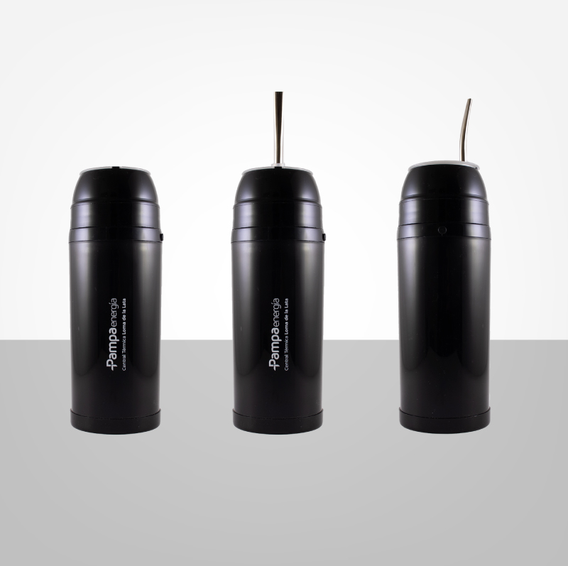 Termo mate automático cuerpo plástico con bombilla metálica.