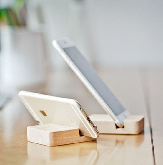 Soportes de madera reciclada para asegurarte de dejar tu celular apoyado de forma segura y además de no perder tiempo buscándolo en tu casa u oficina.