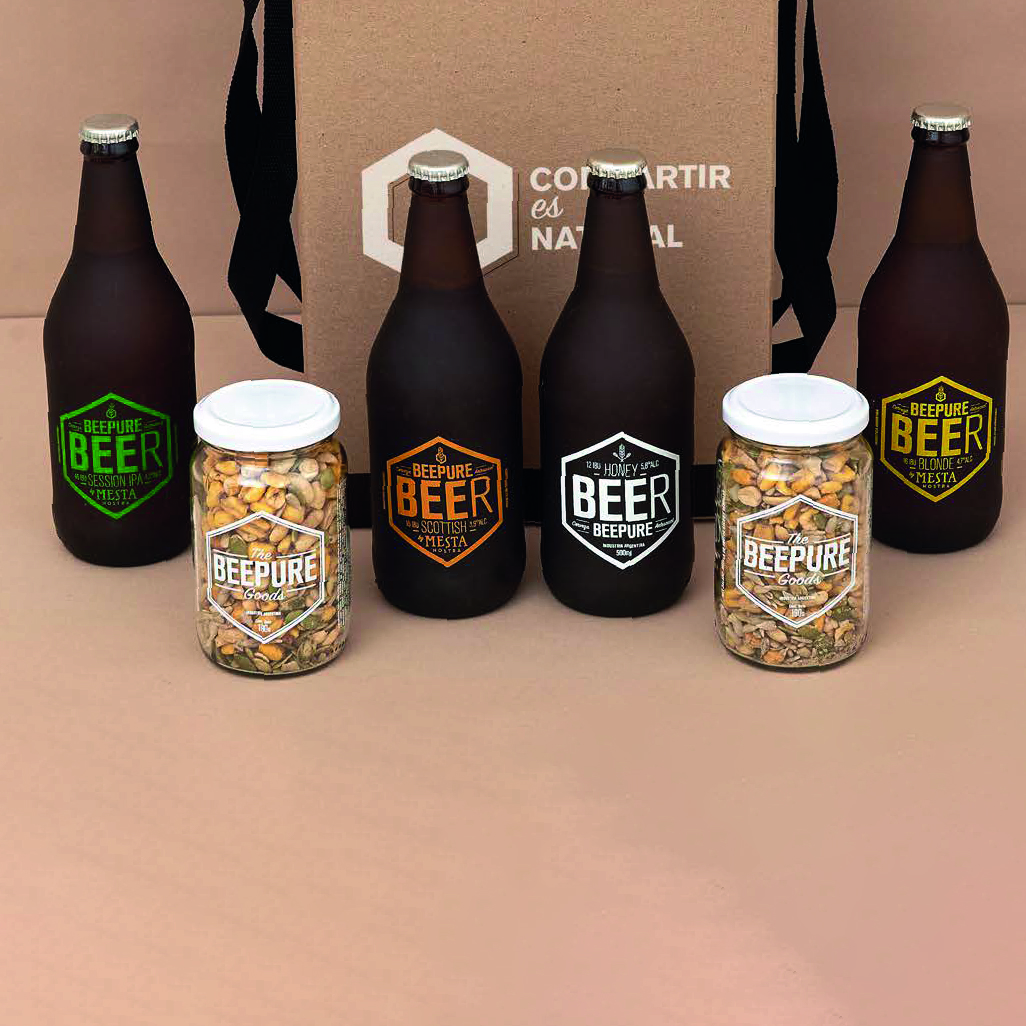 1) Cerveza artesanal HONEY BEER BEEPURE. Botella serigrafiada x500ml