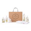 Caja + Jabón líquido + espuma de baño + jabones miniflor en organza y toalla.