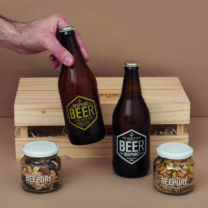 1) Cerveza artesanal HONEY BEER BEEPURE. Botella serigrafiada x500ml