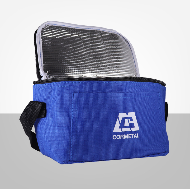 Realizado en su exterior en Polyester 600 x 300D. Interior en aluminio y PE foam. Tira para hombro. Compartimento principal superior y bolsillo frontal. Medidas: 21 x 13 x 13 cm. Capacidad: 3,5 Lt. Tahg.