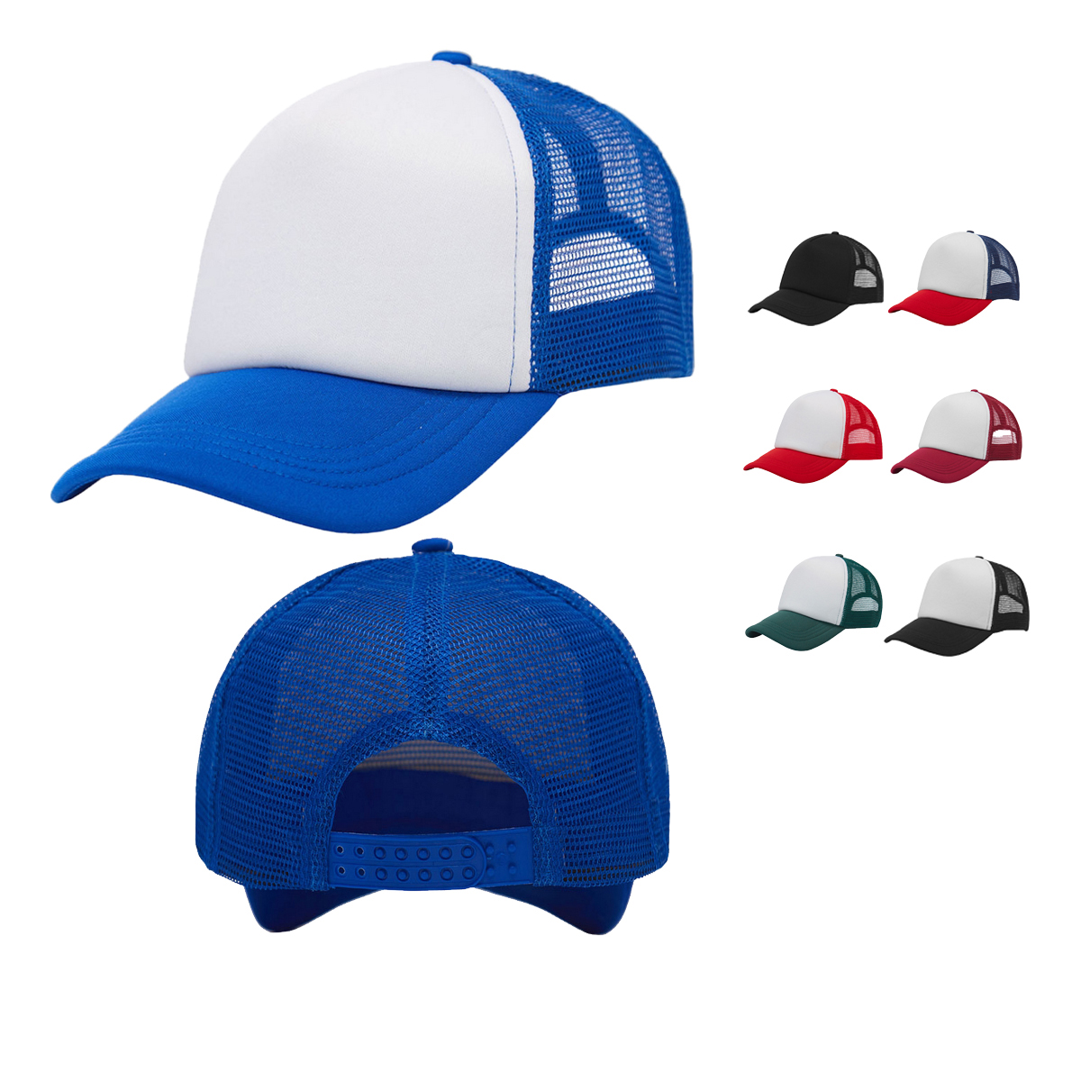 Gorro de 5 paneles en Polyester. Parte trasera con tela red de color. Ajuste con broche plástico.