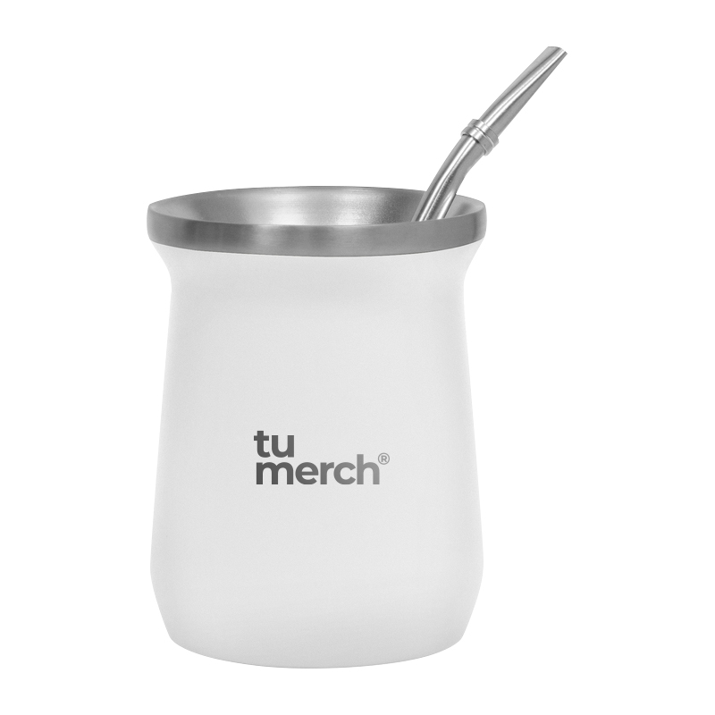 Mate Mug doble pared, sin tratamiento de vacío. Mantiene la temperatura por más tiempo. Pintura Powder Coat (pintura mas duradera y resistente a la corrosión y el paso del tiempo). Bombilla de acero inoxidable 304 de 15,5 cm.
