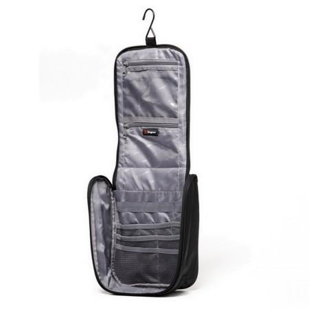 Interior forrado, con sujeciones elásticas y bolsillos con cierre.