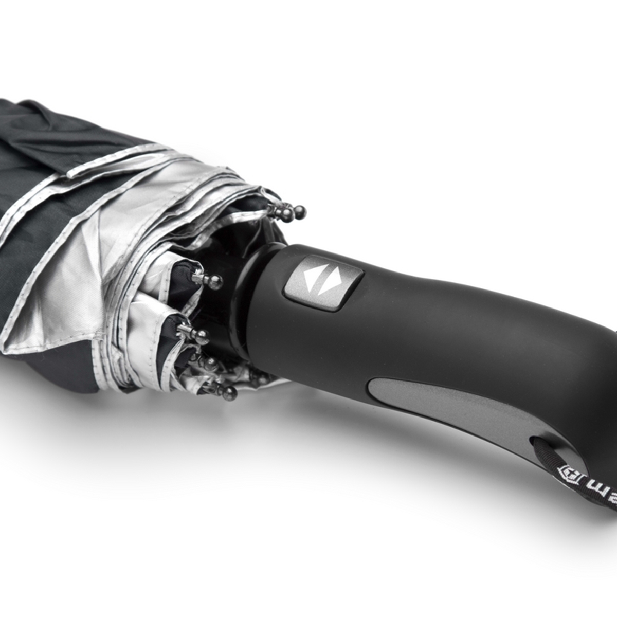 Posee un robusto marco de 8 varillas de apertura y cierre automático, realizado con un material exclusivo que combina fibra de vidrio y plástico super ligero que le brinda durabilidad y no atrae rayos. Mango de plástico cubierto con una goma, de diseño anatómico para un agarre cómodo y no deslizante en condiciones de húmedad. Incluye funda. Medidas Abierto: Longitud 65 cm.; Diámetro 105 cm. Medida cerrado: Longitud 36 cm.