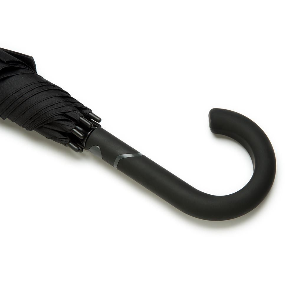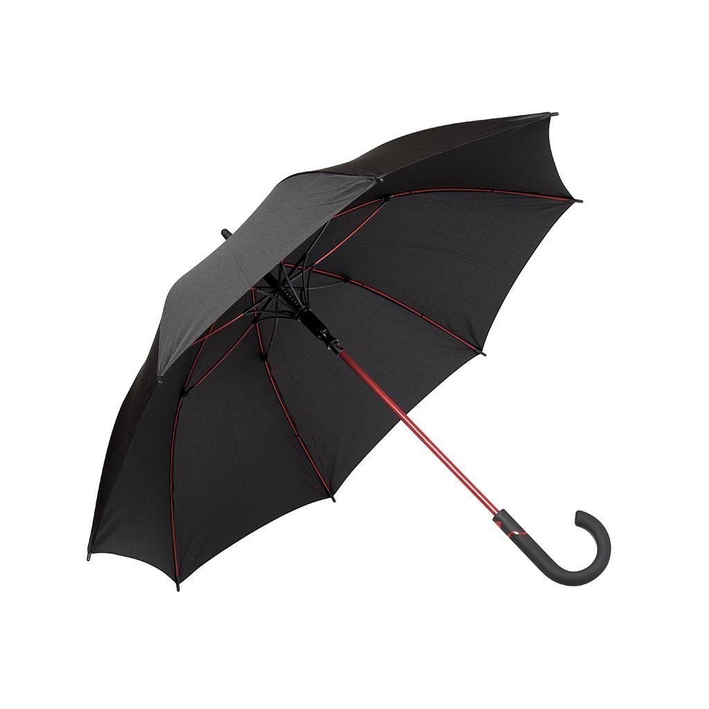 Apertura automática y sistema Wind Proof, el cual permite mayor resistencia al viento y lluvia. Estructura metálica forrada en plástico de color (Ribs de nylon), mango de plástico ABS curvo y puntera de goma con función de para rayos. Incluye funda. Medidas: Largo 100 cm; Diámetro: 89,5 cm.