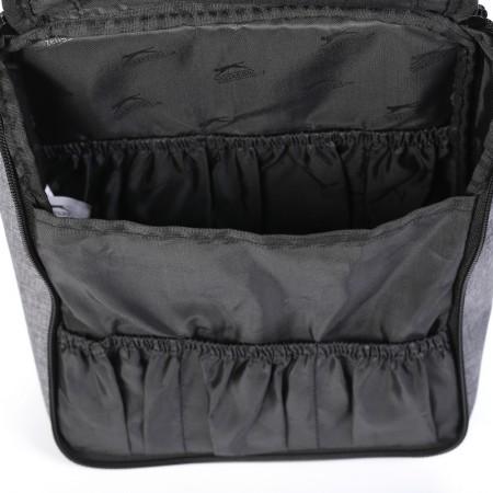 Realizado en Snow. Compartimiento principal con cierre. Divisiones interiores. Bolsillo frontal con cierre. Medidas: 24,5 x 21 x 9 cm. Capacidad: 4.6 Lts.